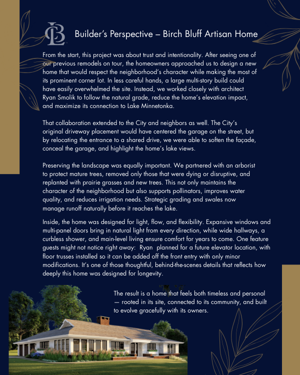 This October, the Fall Artisan Home Tour invites you to explore a one-of-a-kind Shorewood residence at 26125 Birch Bluff Road. Designed for timeless one-level living and styled in collaboration with O’Hara Interiors, every detail reflects elegance, comfort, and craftsmanship at its finest.