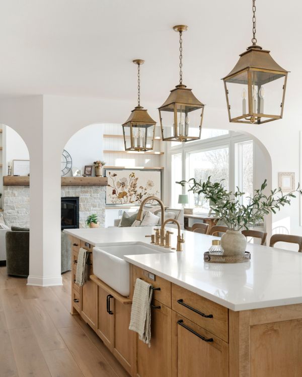 Arched openings introduce a sense of rhythm and flow, gently guiding movement from space to space while adding warmth and architectural interest. Throughout the home, custom alder and paint grade cabinetry provides intentional storage solutions that keep everyday routines beautifully organized and clutter at bay.